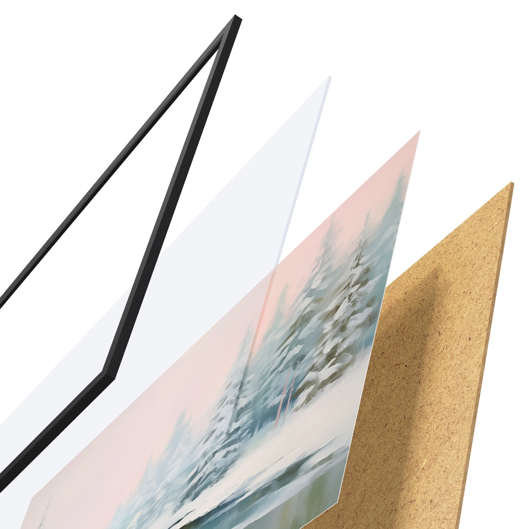 Plagát sa skladá z rámu, plexiskla, vytlačeného obrazu a podkladu z drevotriesky. Plagát možno okamžite zavesiť na stenu vďaka úchytom na zadnej strane.