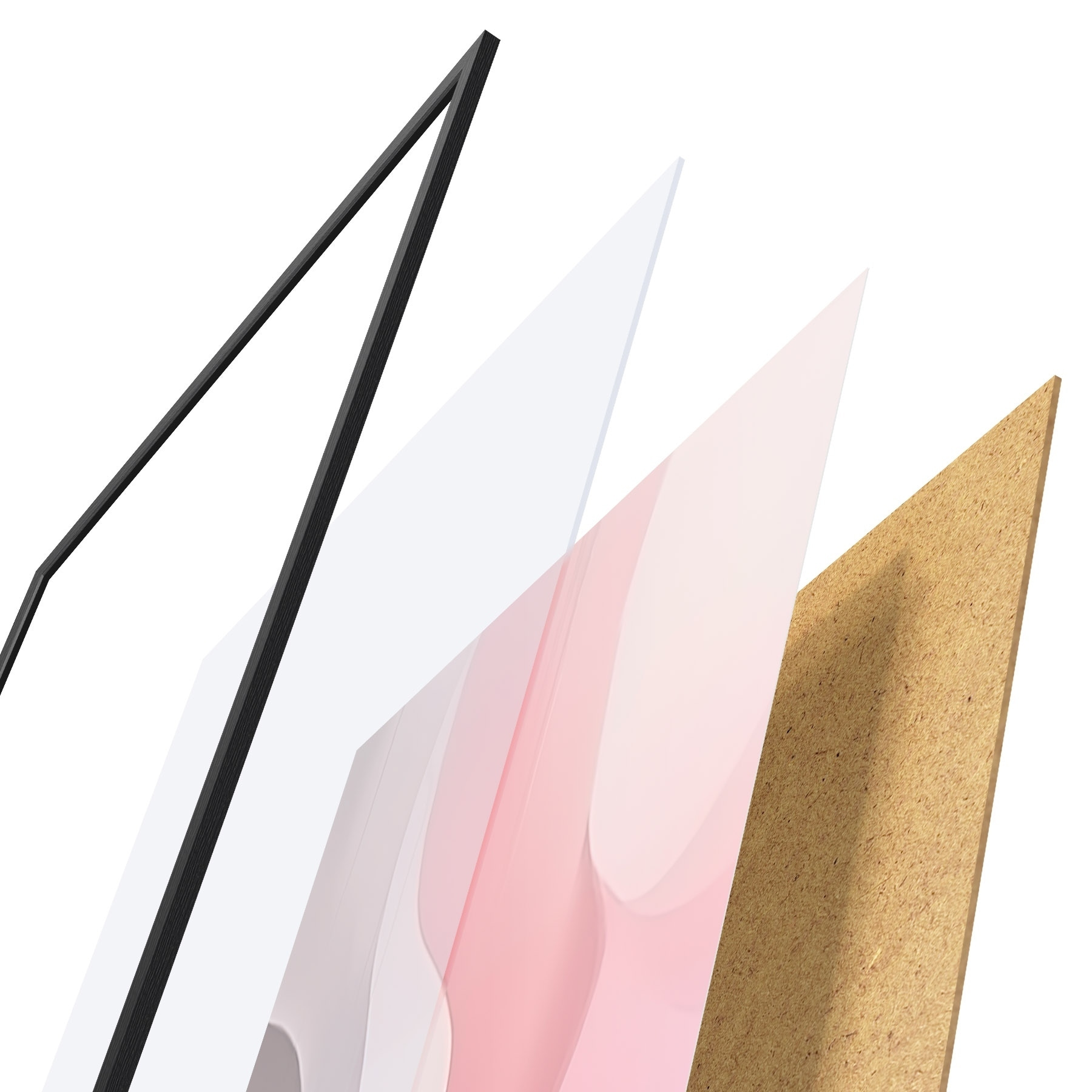 Plagát sa skladá z rámu, plexiskla, vytlačeného obrazu a podkladu z drevotriesky. Plagát možno okamžite zavesiť na stenu vďaka úchytom na zadnej strane.