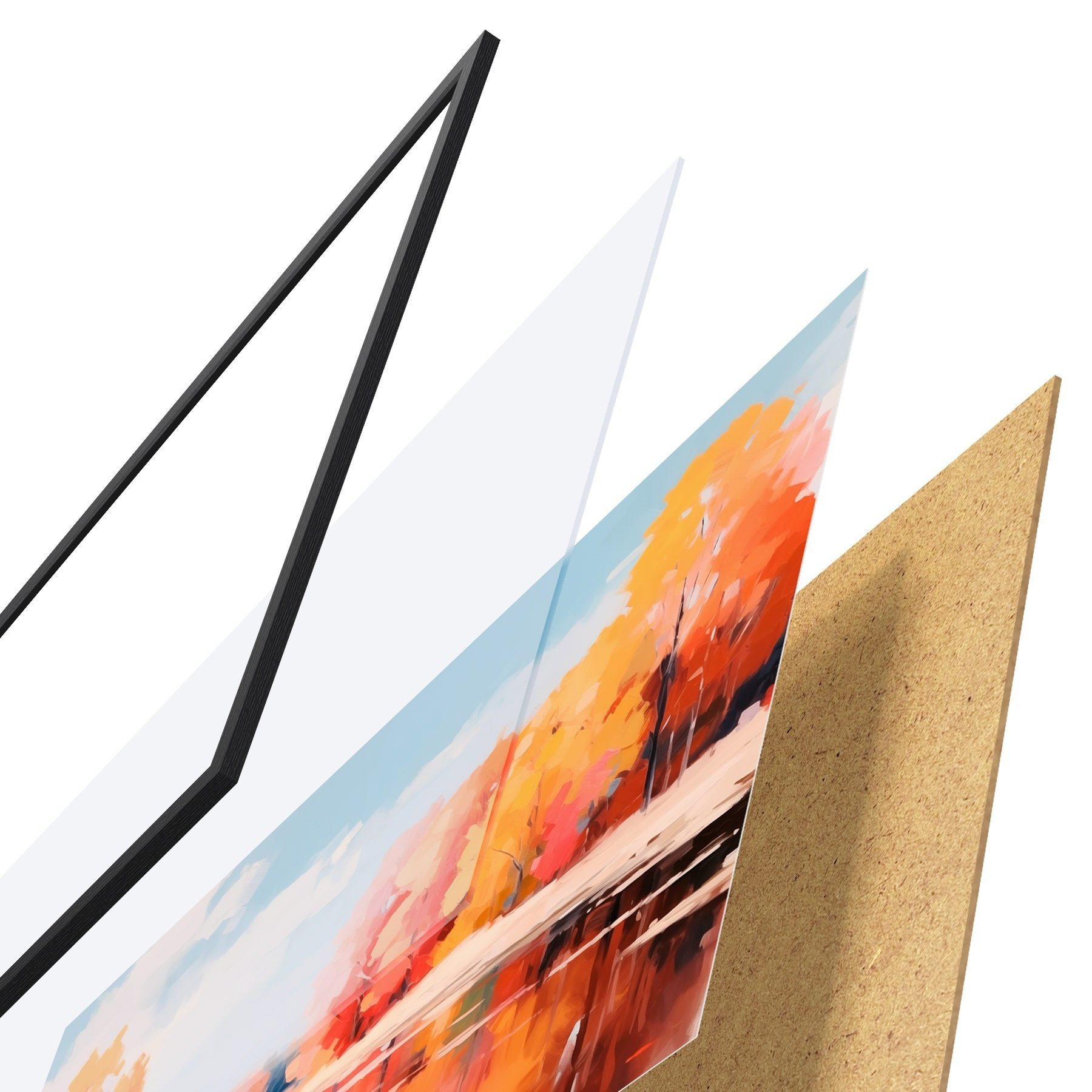 Plagát sa skladá z rámu, plexiskla, vytlačeného obrazu a podkladu z drevotriesky. Plagát možno okamžite zavesiť na stenu vďaka úchytom na zadnej strane.