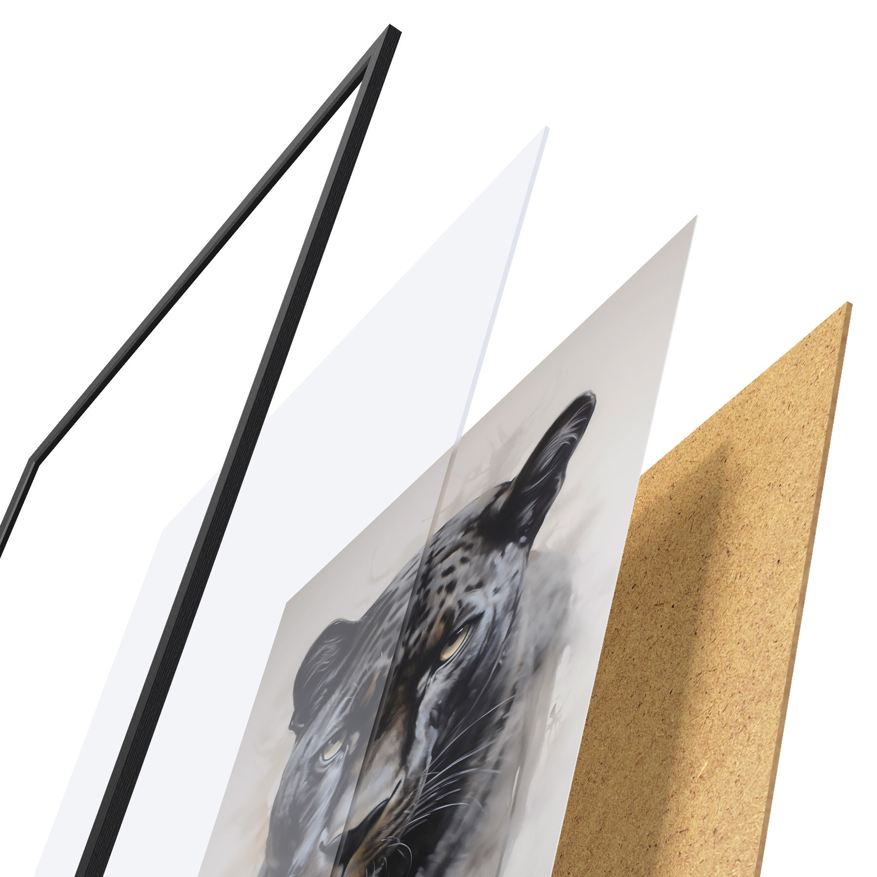 Plagát sa skladá z rámu, plexiskla, vytlačeného obrazu a podkladu z drevotriesky. Plagát možno okamžite zavesiť na stenu vďaka úchytom na zadnej strane.