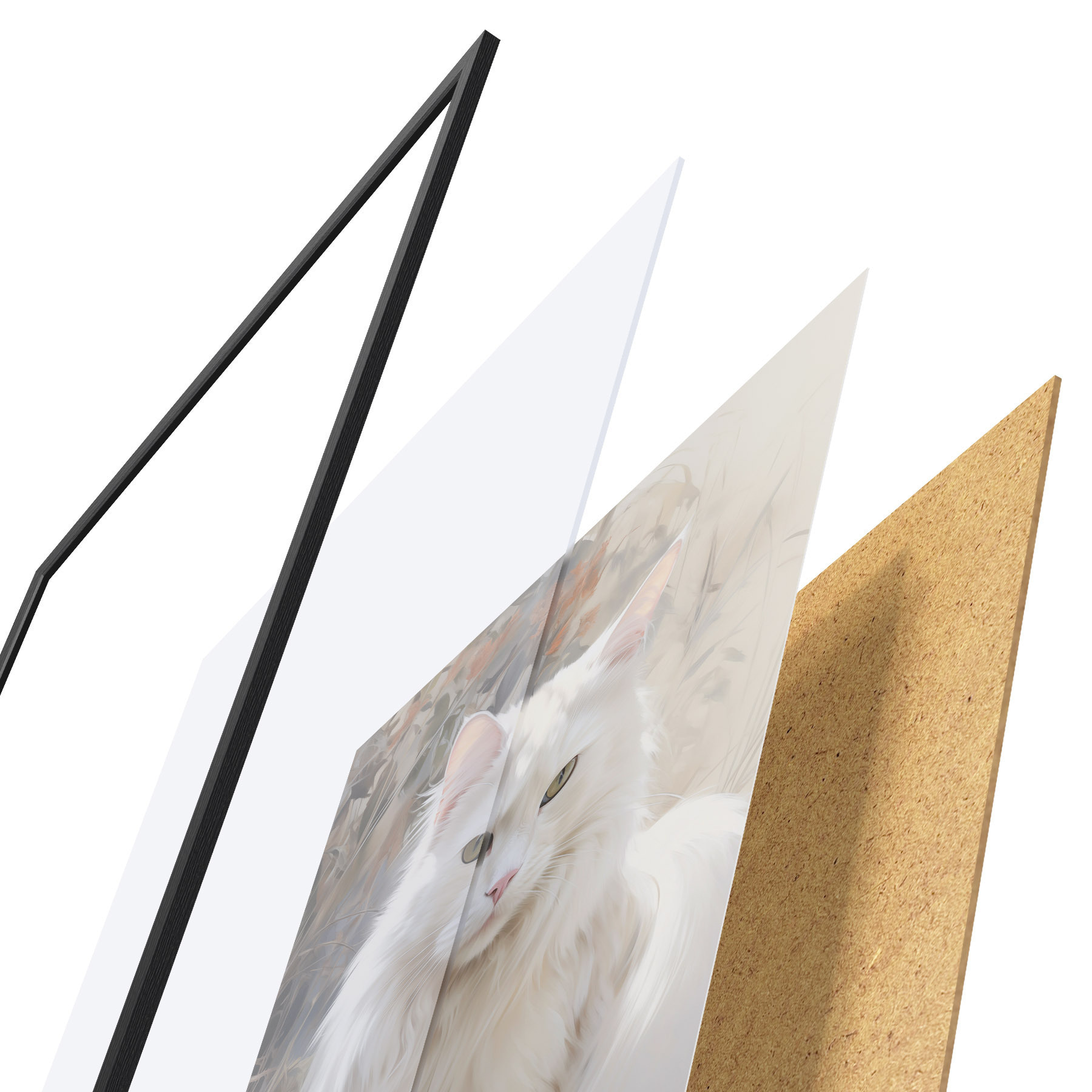 Plagát sa skladá z rámu, plexiskla, vytlačeného obrazu a podkladu z drevotriesky. Plagát možno okamžite zavesiť na stenu vďaka úchytom na zadnej strane.
