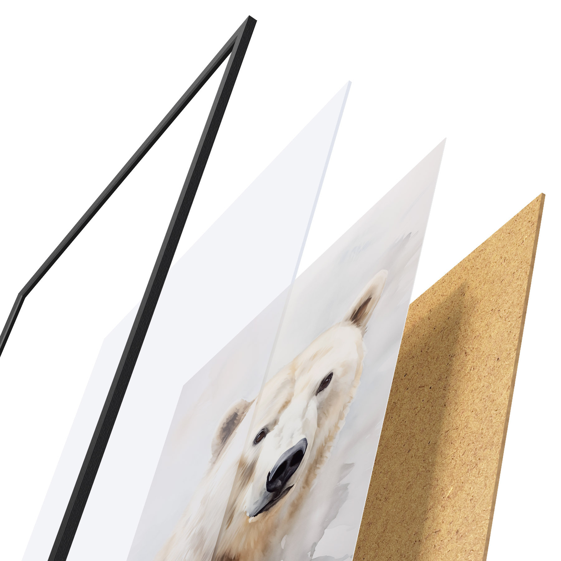 Plagát sa skladá z rámu, plexiskla, vytlačeného obrazu a podkladu z drevotriesky. Plagát možno okamžite zavesiť na stenu vďaka úchytom na zadnej strane.