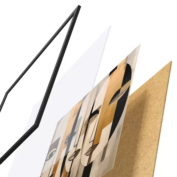 Plagát sa skladá z rámu, plexiskla, vytlačeného obrazu a podkladu z drevotriesky. Plagát možno okamžite zavesiť na stenu vďaka úchytom na zadnej strane.