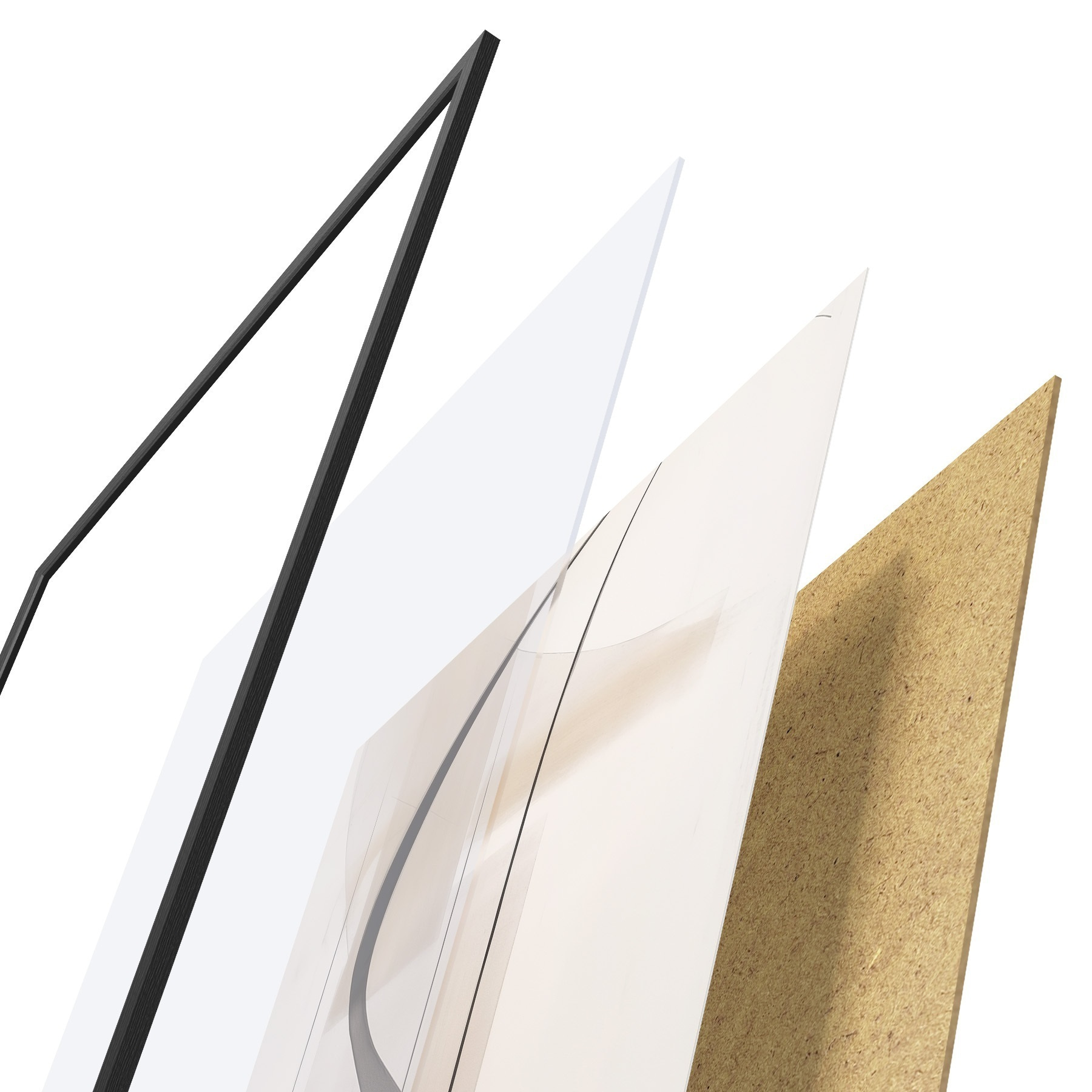 Plagát sa skladá z rámu, plexiskla, vytlačeného obrazu a podkladu z drevotriesky. Plagát možno okamžite zavesiť na stenu vďaka úchytom na zadnej strane.