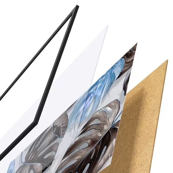 Plagát sa skladá z rámu, plexiskla, vytlačeného obrazu a podkladu z drevotriesky. Plagát možno okamžite zavesiť na stenu vďaka úchytom na zadnej strane.