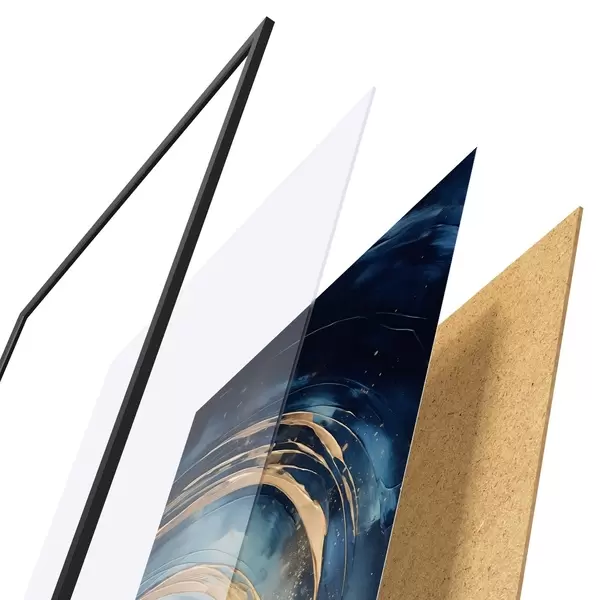 Plagát sa skladá z rámu, plexiskla, vytlačeného obrazu a podkladu z drevotriesky. Plagát možno okamžite zavesiť na stenu vďaka úchytom na zadnej strane.