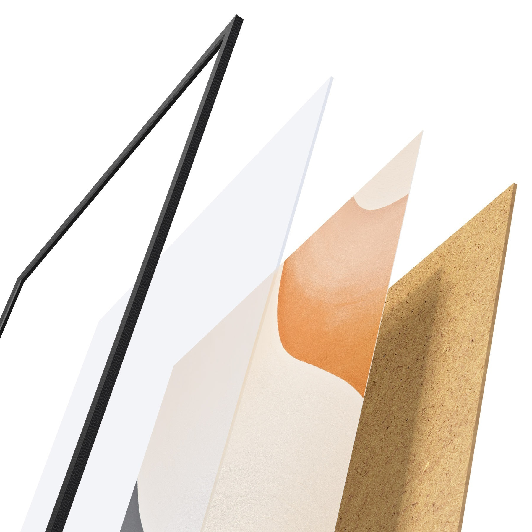 Plagát sa skladá z rámu, plexiskla, vytlačeného obrazu a podkladu z drevotriesky. Plagát možno okamžite zavesiť na stenu vďaka úchytom na zadnej strane.