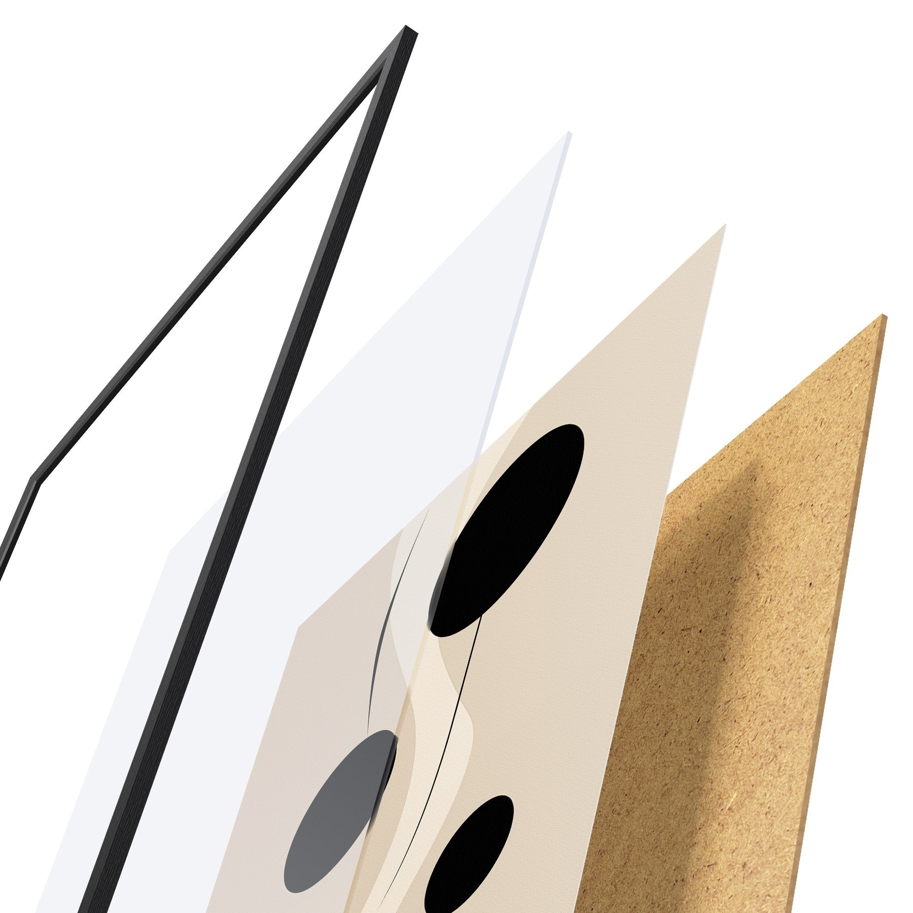 Plagát sa skladá z rámu, plexiskla, vytlačeného obrazu a podkladu z drevotriesky. Plagát možno okamžite zavesiť na stenu vďaka úchytom na zadnej strane.