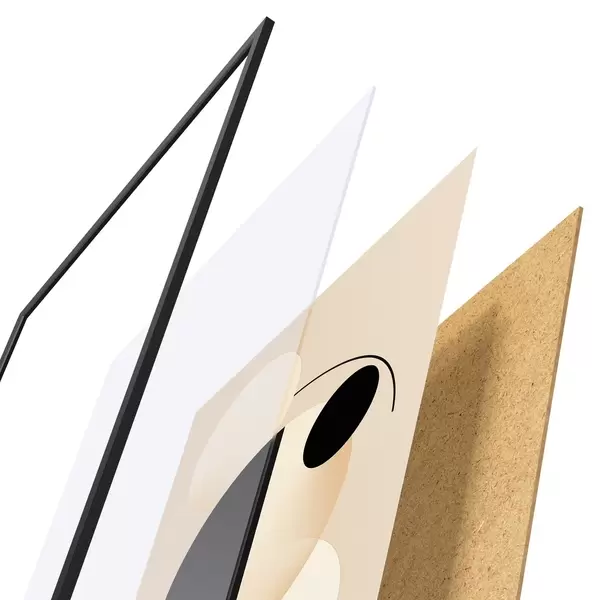Plagát sa skladá z rámu, plexiskla, vytlačeného obrazu a podkladu z drevotriesky. Plagát možno okamžite zavesiť na stenu vďaka úchytom na zadnej strane.