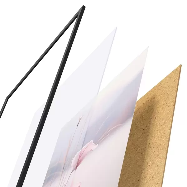 Plagát sa skladá z rámu, plexiskla, vytlačeného obrazu a podkladu z drevotriesky. Plagát možno okamžite zavesiť na stenu vďaka úchytom na zadnej strane.