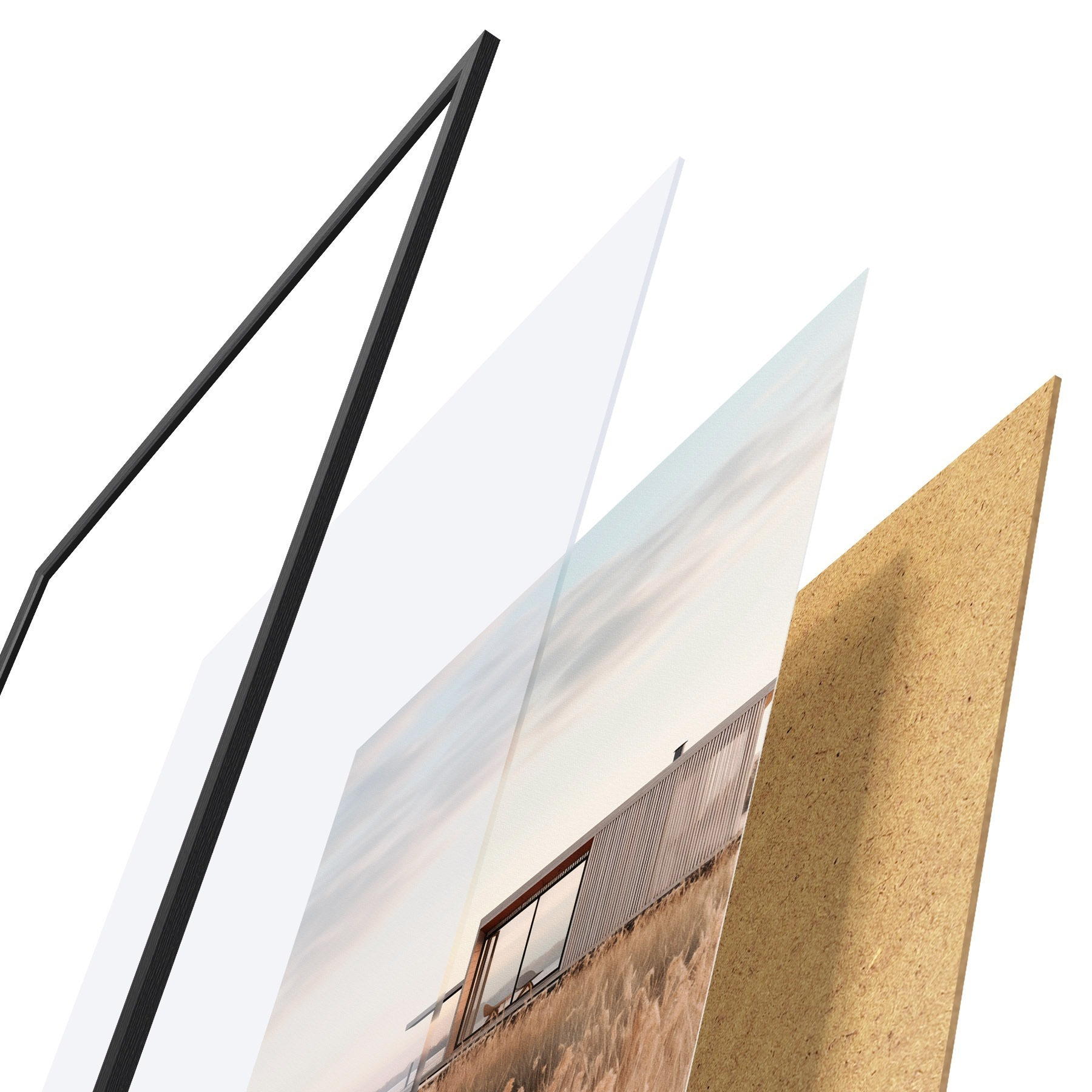 Plagát sa skladá z rámu, plexiskla, vytlačeného obrazu a podkladu z drevotriesky. Plagát možno okamžite zavesiť na stenu vďaka úchytom na zadnej strane.