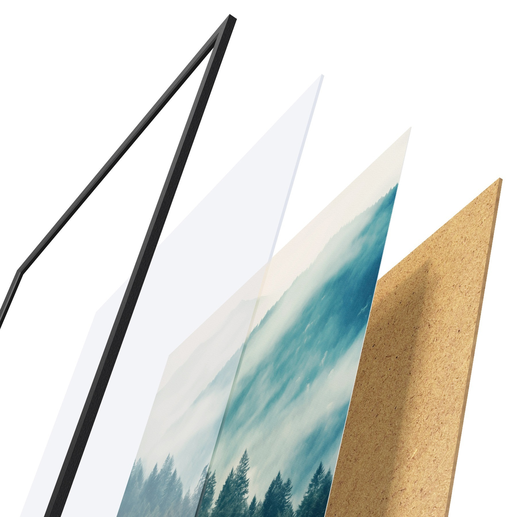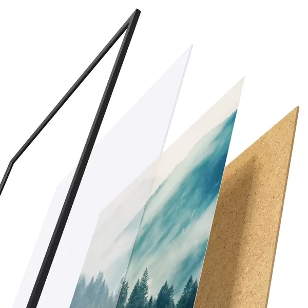 Plagát sa skladá z rámu, plexiskla, vytlačeného obrazu a podkladu z drevotriesky. Plagát možno okamžite zavesiť na stenu vďaka úchytom na zadnej strane.