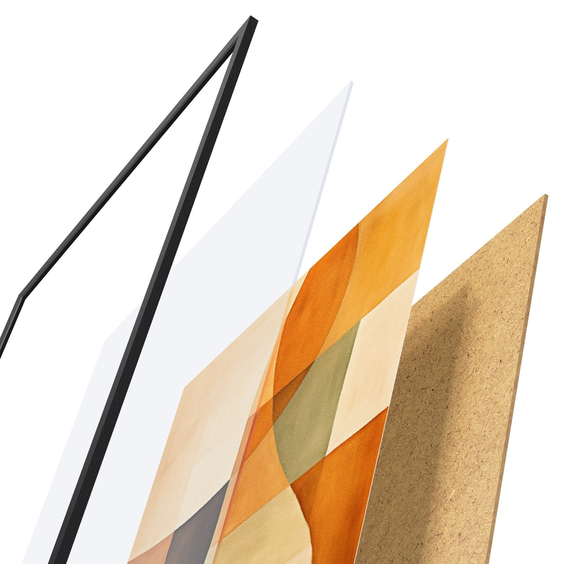Plagát sa skladá z rámu, plexiskla, vytlačeného obrazu a podkladu z drevotriesky. Plagát možno okamžite zavesiť na stenu vďaka úchytom na zadnej strane.