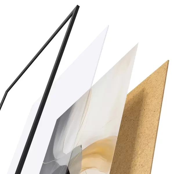 Plagát sa skladá z rámu, plexiskla, vytlačeného obrazu a podkladu z drevotriesky. Plagát možno okamžite zavesiť na stenu vďaka úchytom na zadnej strane.