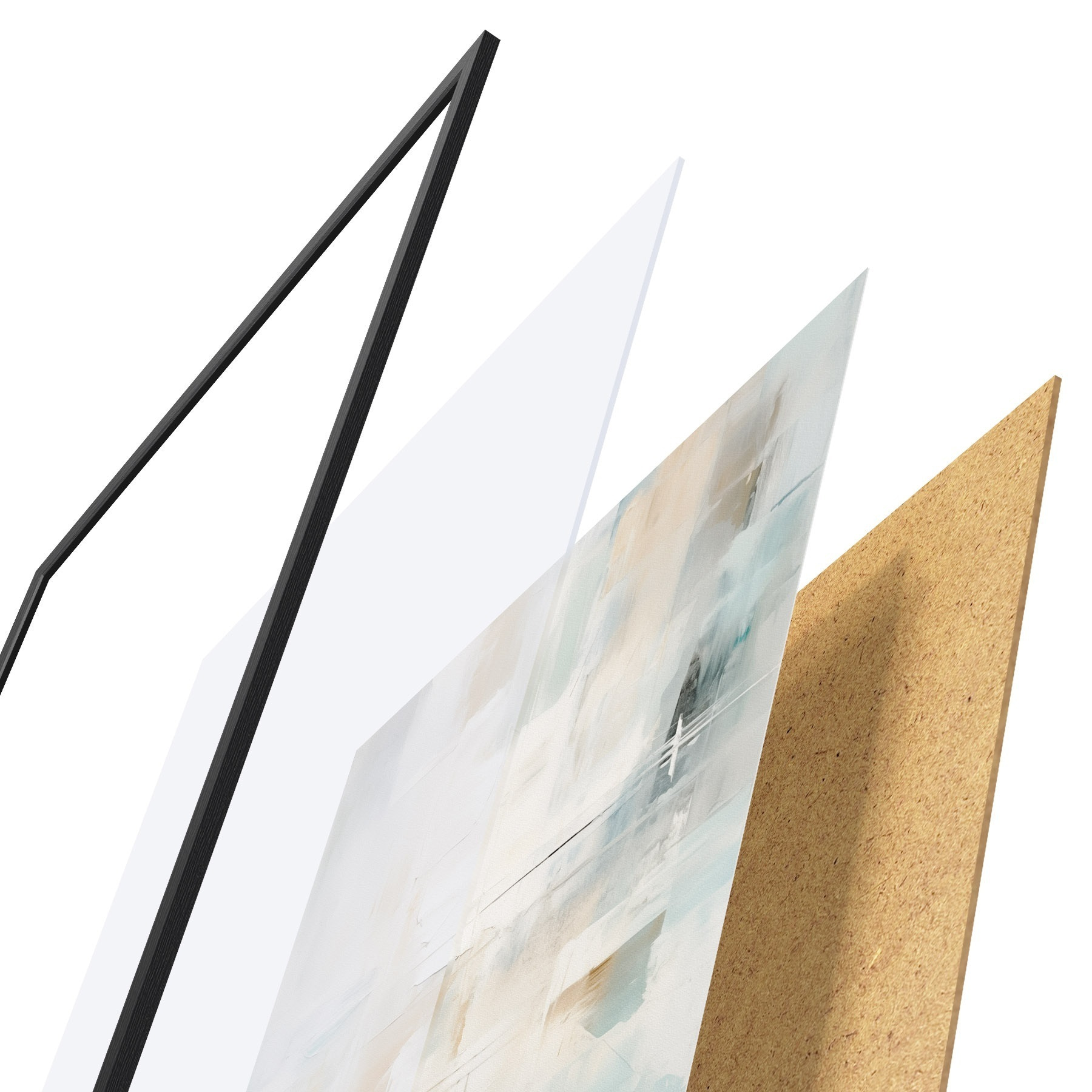 Plagát sa skladá z rámu, plexiskla, vytlačeného obrazu a podkladu z drevotriesky. Plagát možno okamžite zavesiť na stenu vďaka úchytom na zadnej strane.