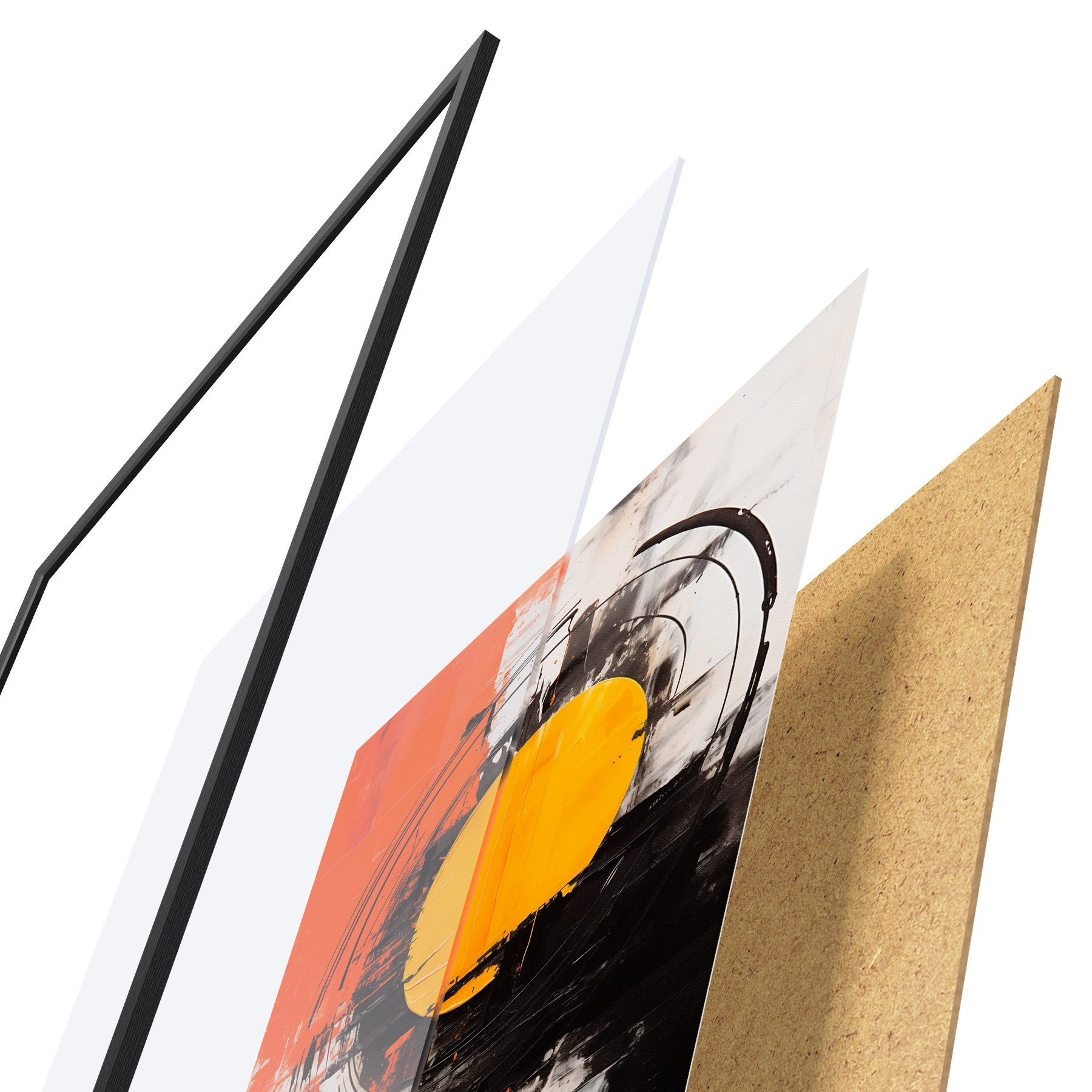 Plagát sa skladá z rámu, plexiskla, vytlačeného obrazu a podkladu z drevotriesky. Plagát možno okamžite zavesiť na stenu vďaka úchytom na zadnej strane.