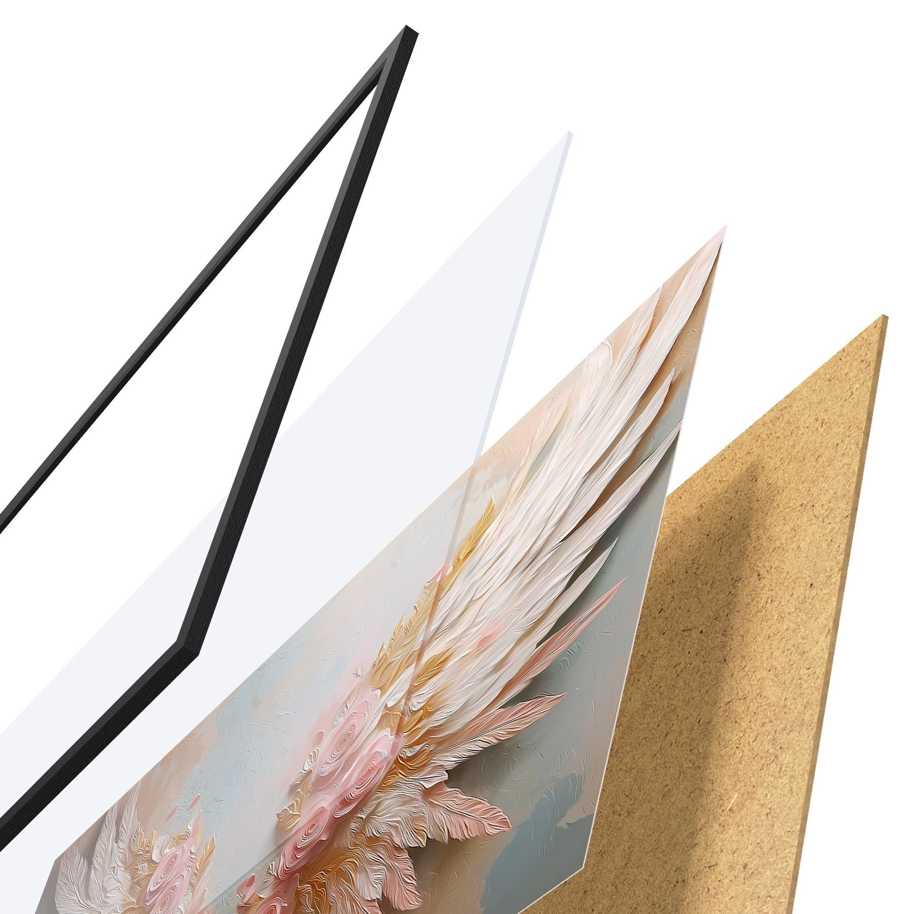 Plagát sa skladá z rámu, plexiskla, vytlačeného obrazu a podkladu z drevotriesky. Plagát možno okamžite zavesiť na stenu vďaka úchytom na zadnej strane.