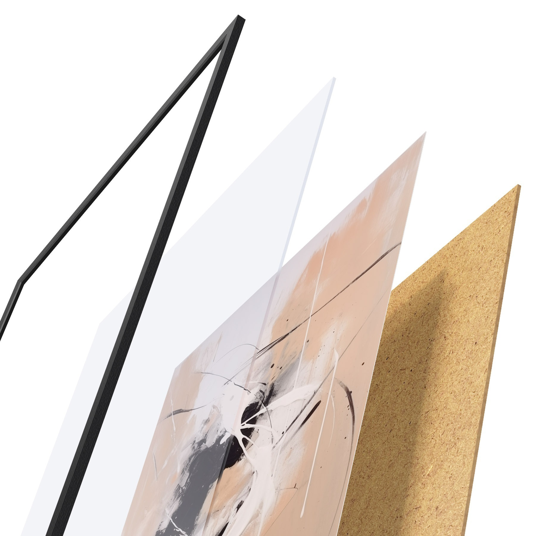 Plagát sa skladá z rámu, plexiskla, vytlačeného obrazu a podkladu z drevotriesky. Plagát možno okamžite zavesiť na stenu vďaka úchytom na zadnej strane.