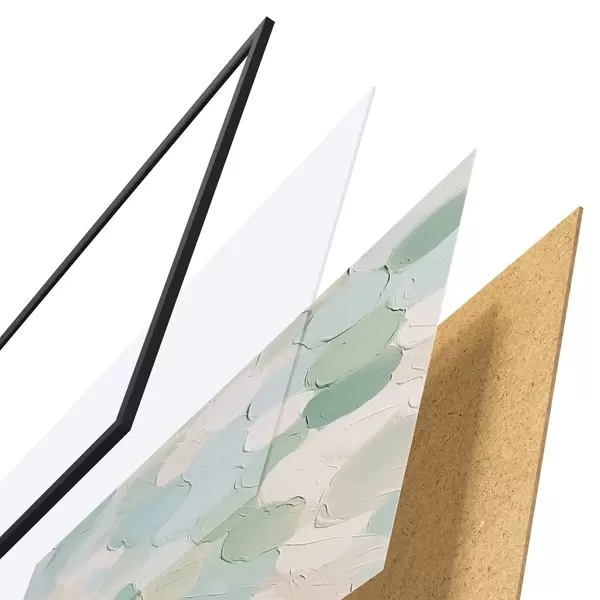 Plagát sa skladá z rámu, plexiskla, vytlačeného obrazu a podkladu z drevotriesky. Plagát možno okamžite zavesiť na stenu vďaka úchytom na zadnej strane.