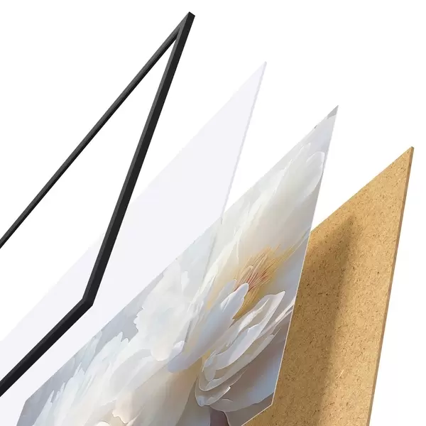 Plagát sa skladá z rámu, plexiskla, vytlačeného obrazu a podkladu z drevotriesky. Plagát možno okamžite zavesiť na stenu vďaka úchytom na zadnej strane.