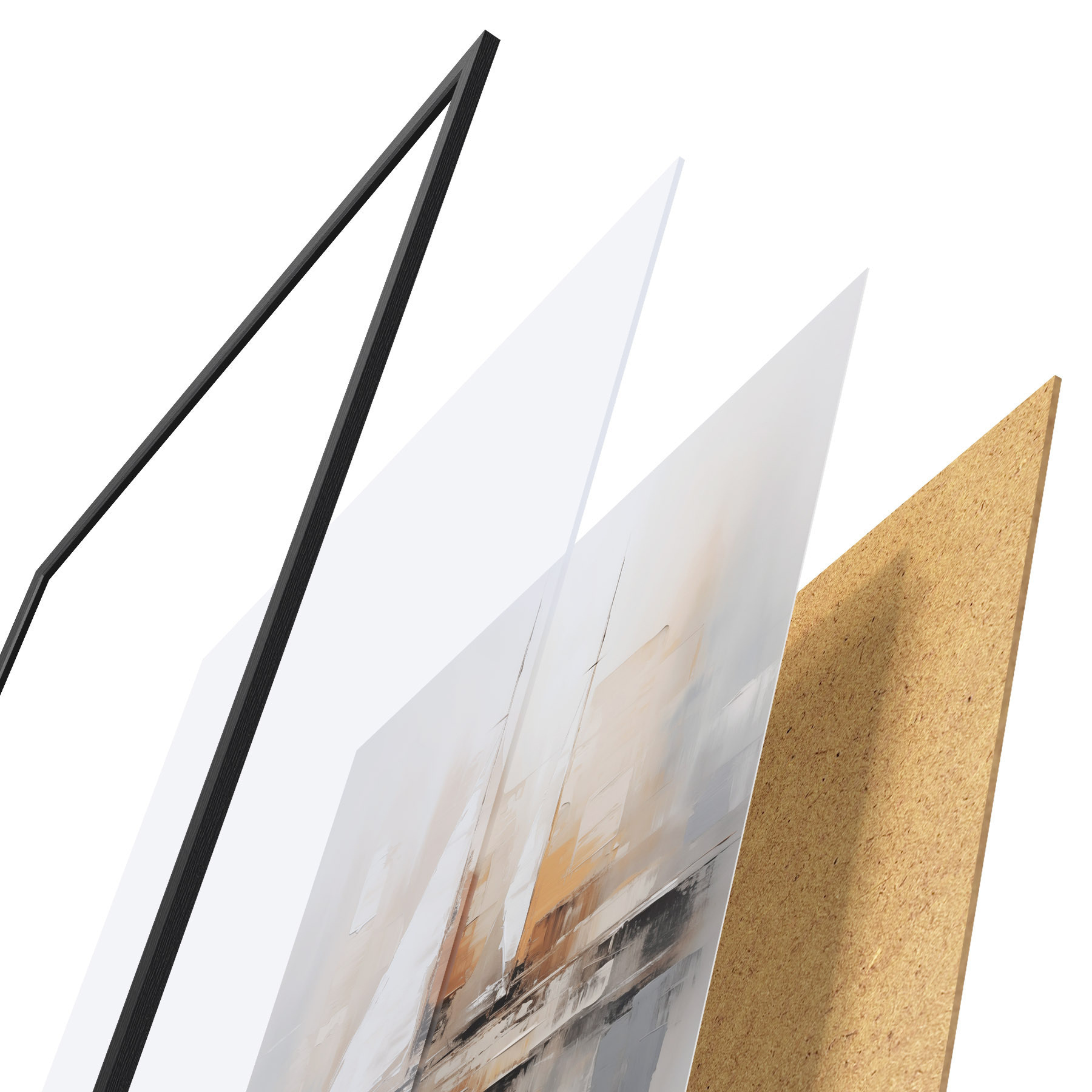Plagát sa skladá z rámu, plexiskla, vytlačeného obrazu a podkladu z drevotriesky. Plagát možno okamžite zavesiť na stenu vďaka úchytom na zadnej strane.