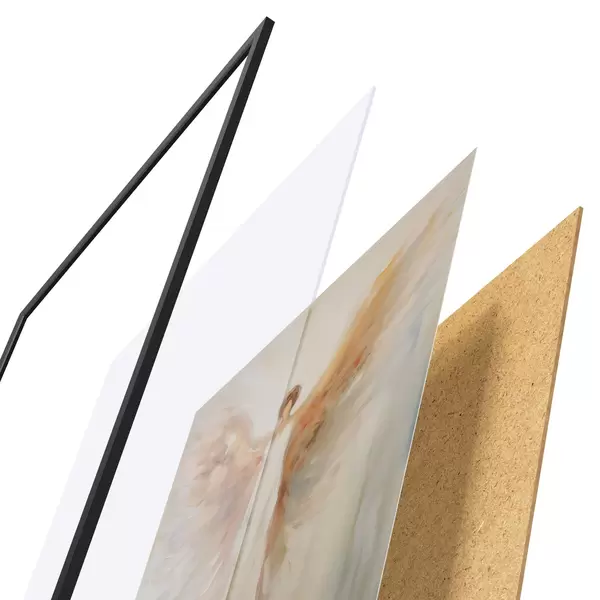 Plagát sa skladá z rámu, plexiskla, vytlačeného obrazu a podkladu z drevotriesky. Plagát možno okamžite zavesiť na stenu vďaka úchytom na zadnej strane.