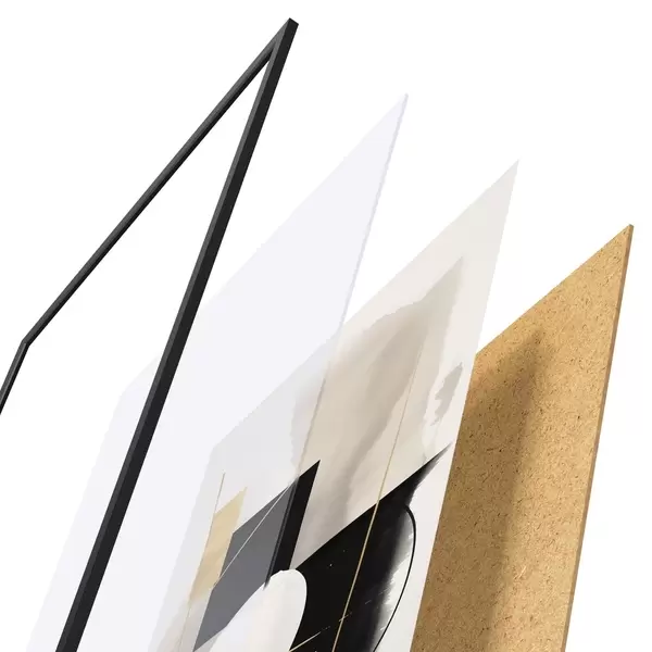 Plagát sa skladá z rámu, plexiskla, vytlačeného obrazu a podkladu z drevotriesky. Plagát možno okamžite zavesiť na stenu vďaka úchytom na zadnej strane.