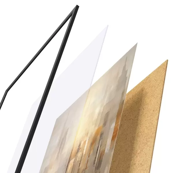 Plagát sa skladá z rámu, plexiskla, vytlačeného obrazu a podkladu z drevotriesky. Plagát možno okamžite zavesiť na stenu vďaka úchytom na zadnej strane.