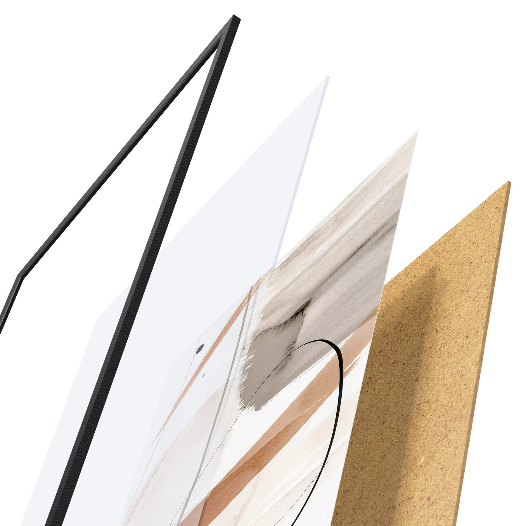 Plagát sa skladá z rámu, plexiskla, vytlačeného obrazu a podkladu z drevotriesky. Plagát možno okamžite zavesiť na stenu vďaka úchytom na zadnej strane.