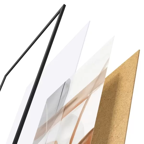 Plagát sa skladá z rámu, plexiskla, vytlačeného obrazu a podkladu z drevotriesky. Plagát možno okamžite zavesiť na stenu vďaka úchytom na zadnej strane.