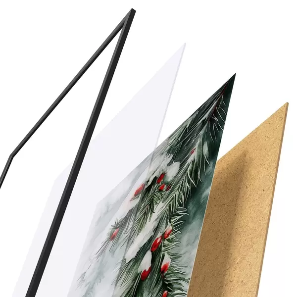 Plagát sa skladá z rámu, plexiskla, vytlačeného obrazu a podkladu z drevotriesky. Plagát možno okamžite zavesiť na stenu vďaka úchytom na zadnej strane.