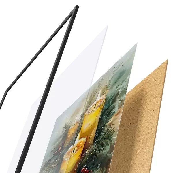 Plagát sa skladá z rámu, plexiskla, vytlačeného obrazu a podkladu z drevotriesky. Plagát možno okamžite zavesiť na stenu vďaka úchytom na zadnej strane.
