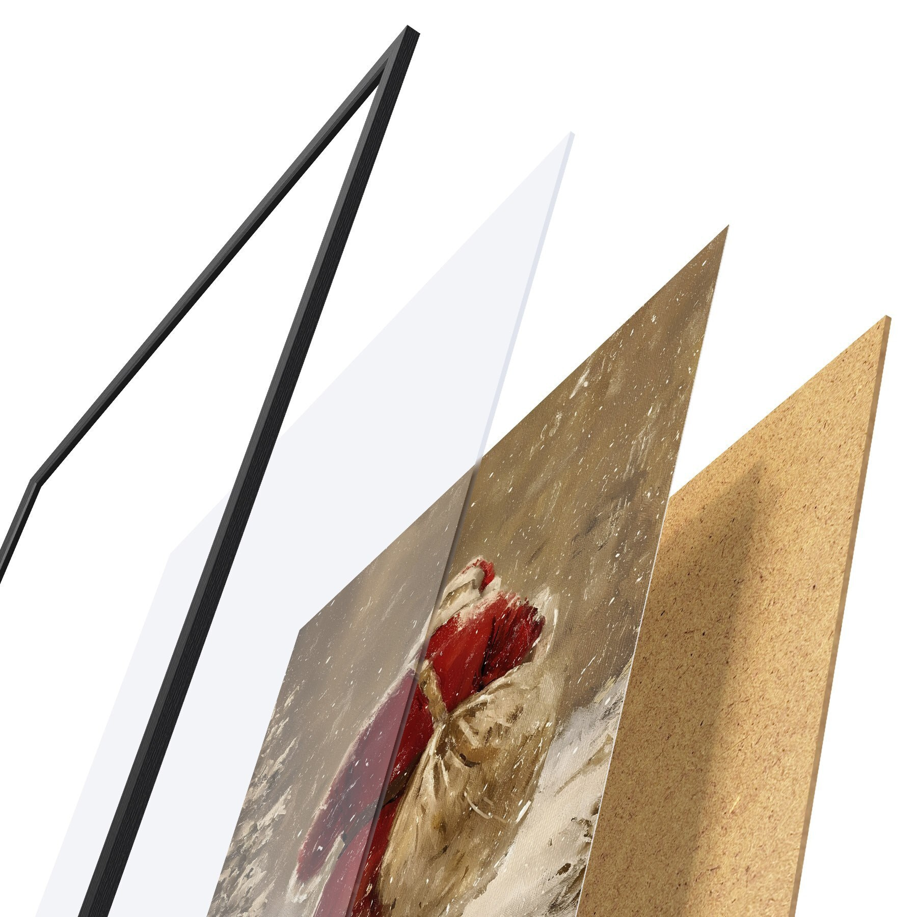 Plagát sa skladá z rámu, plexiskla, vytlačeného obrazu a podkladu z drevotriesky. Plagát možno okamžite zavesiť na stenu vďaka úchytom na zadnej strane.
