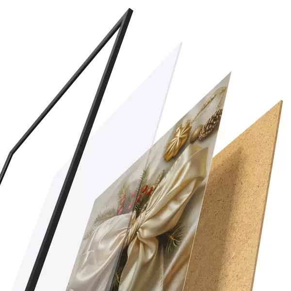 Plagát sa skladá z rámu, plexiskla, vytlačeného obrazu a podkladu z drevotriesky. Plagát možno okamžite zavesiť na stenu vďaka úchytom na zadnej strane.