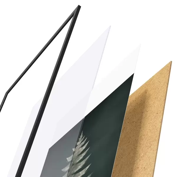 Plagát sa skladá z rámu, plexiskla, vytlačeného obrazu a podkladu z drevotriesky. Plagát možno okamžite zavesiť na stenu vďaka úchytom na zadnej strane.
