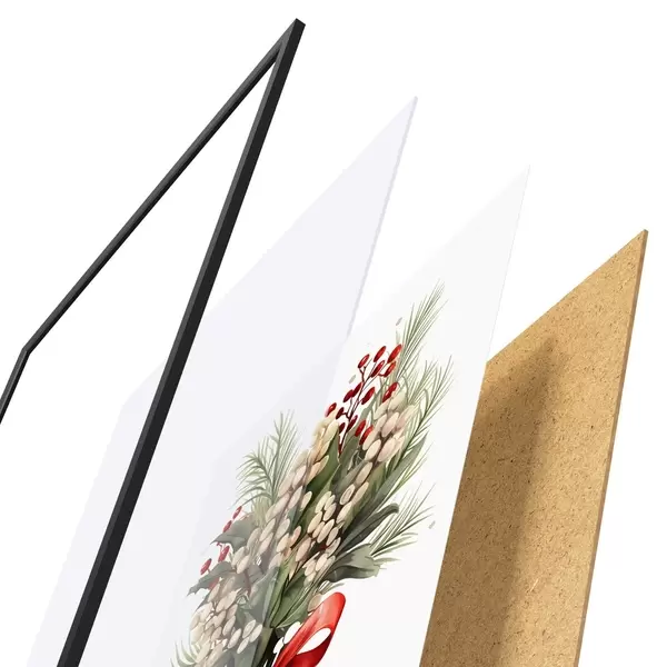 Plagát sa skladá z rámu, plexiskla, vytlačeného obrazu a podkladu z drevotriesky. Plagát možno okamžite zavesiť na stenu vďaka úchytom na zadnej strane.