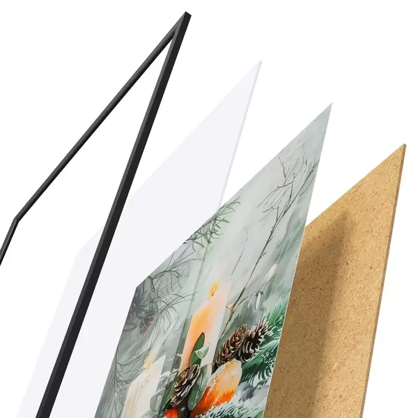 Plagát sa skladá z rámu, plexiskla, vytlačeného obrazu a podkladu z drevotriesky. Plagát možno okamžite zavesiť na stenu vďaka úchytom na zadnej strane.
