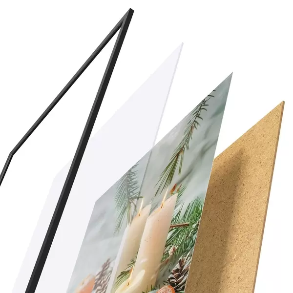 Plagát sa skladá z rámu, plexiskla, vytlačeného obrazu a podkladu z drevotriesky. Plagát možno okamžite zavesiť na stenu vďaka úchytom na zadnej strane.
