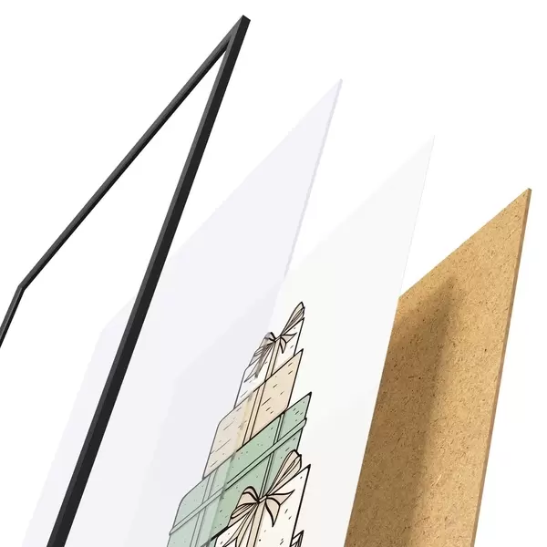 Plagát sa skladá z rámu, plexiskla, vytlačeného obrazu a podkladu z drevotriesky. Plagát možno okamžite zavesiť na stenu vďaka úchytom na zadnej strane.