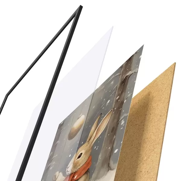 Plagát sa skladá z rámu, plexiskla, vytlačeného obrazu a podkladu z drevotriesky. Plagát možno okamžite zavesiť na stenu vďaka úchytom na zadnej strane.