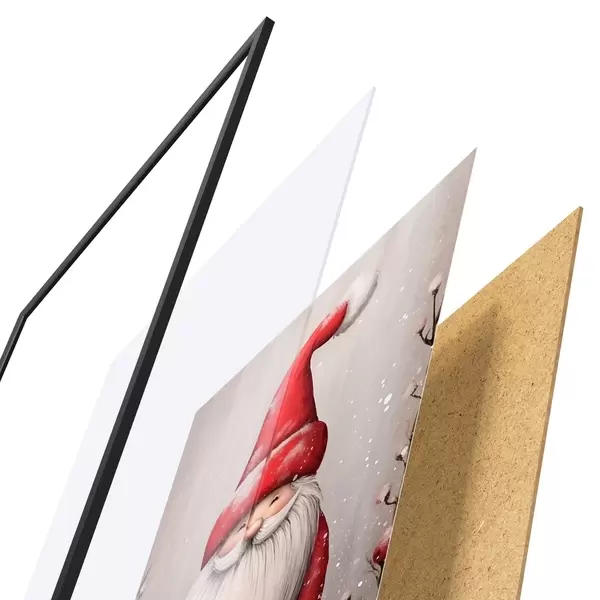 Plagát sa skladá z rámu, plexiskla, vytlačeného obrazu a podkladu z drevotriesky. Plagát možno okamžite zavesiť na stenu vďaka úchytom na zadnej strane.