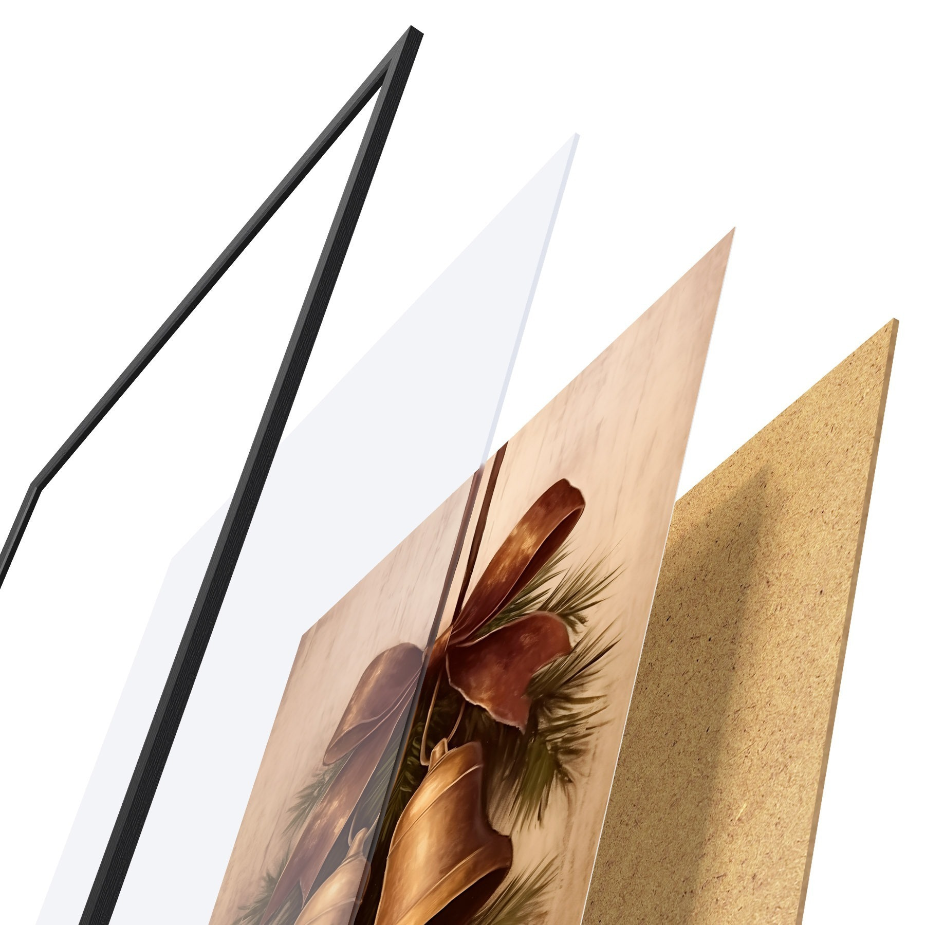 Plagát sa skladá z rámu, plexiskla, vytlačeného obrazu a podkladu z drevotriesky. Plagát možno okamžite zavesiť na stenu vďaka úchytom na zadnej strane.