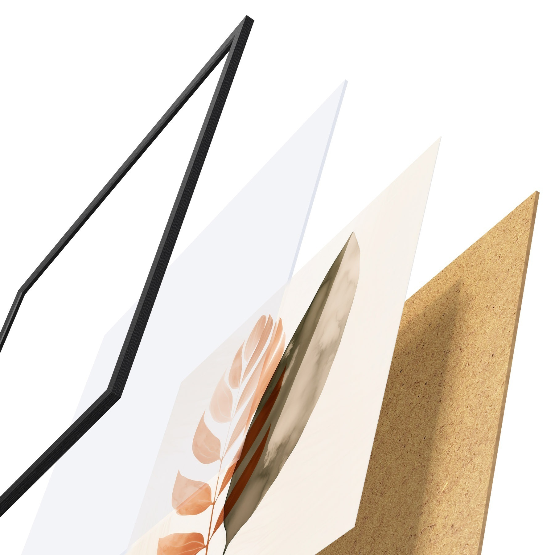 Plagát sa skladá z rámu, plexiskla, vytlačeného obrazu a podkladu z drevotriesky. Plagát možno okamžite zavesiť na stenu vďaka úchytom na zadnej strane.