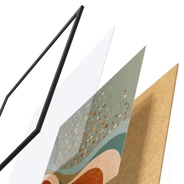 Plagát sa skladá z rámu, plexiskla, vytlačeného obrazu a podkladu z drevotriesky. Plagát možno okamžite zavesiť na stenu vďaka úchytom na zadnej strane.
