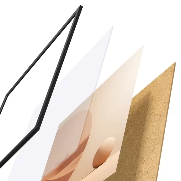 Plagát sa skladá z rámu, plexiskla, vytlačeného obrazu a podkladu z drevotriesky. Plagát možno okamžite zavesiť na stenu vďaka úchytom na zadnej strane.