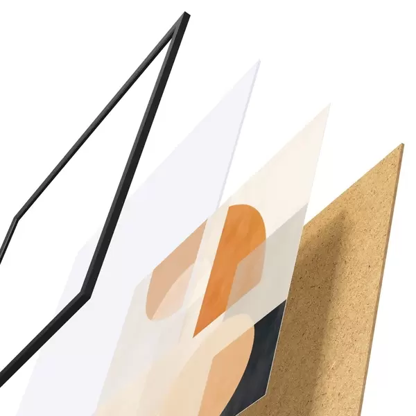 Plagát sa skladá z rámu, plexiskla, vytlačeného obrazu a podkladu z drevotriesky. Plagát možno okamžite zavesiť na stenu vďaka úchytom na zadnej strane.
