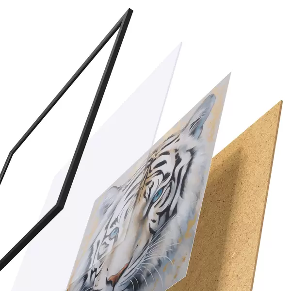 Plagát sa skladá z rámu, plexiskla, vytlačeného obrazu a podkladu z drevotriesky. Plagát možno okamžite zavesiť na stenu vďaka úchytom na zadnej strane.