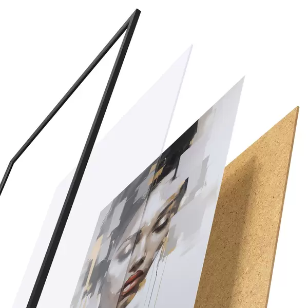 Plagát sa skladá z rámu, plexiskla, vytlačeného obrazu a podkladu z drevotriesky. Plagát možno okamžite zavesiť na stenu vďaka úchytom na zadnej strane.