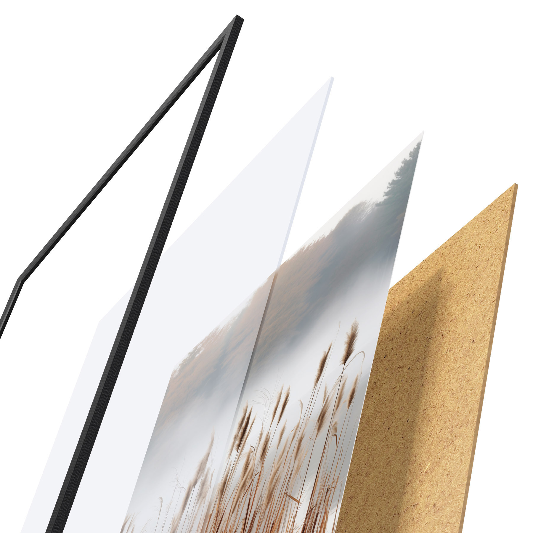 Plagát sa skladá z rámu, plexiskla, vytlačeného obrazu a podkladu z drevotriesky. Plagát možno okamžite zavesiť na stenu vďaka úchytom na zadnej strane.