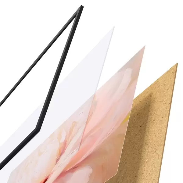 Plagát sa skladá z rámu, plexiskla, vytlačeného obrazu a podkladu z drevotriesky. Plagát možno okamžite zavesiť na stenu vďaka úchytom na zadnej strane.